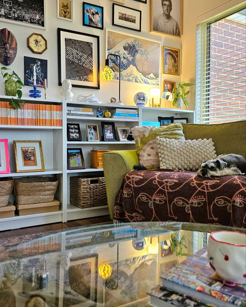The gallery wall and bookshelf situation in our living room is apparently peak cluttercore and why I was interviewed on the subject.