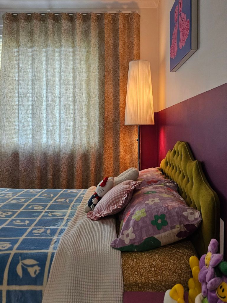 Lamps are kinda like plants; you can never have too many. In our living room, our gallery wall shelf has small table lamps and candles dotted along the entire length, including a rotating disco light that bounces sunlight around the room at certain points during the day.