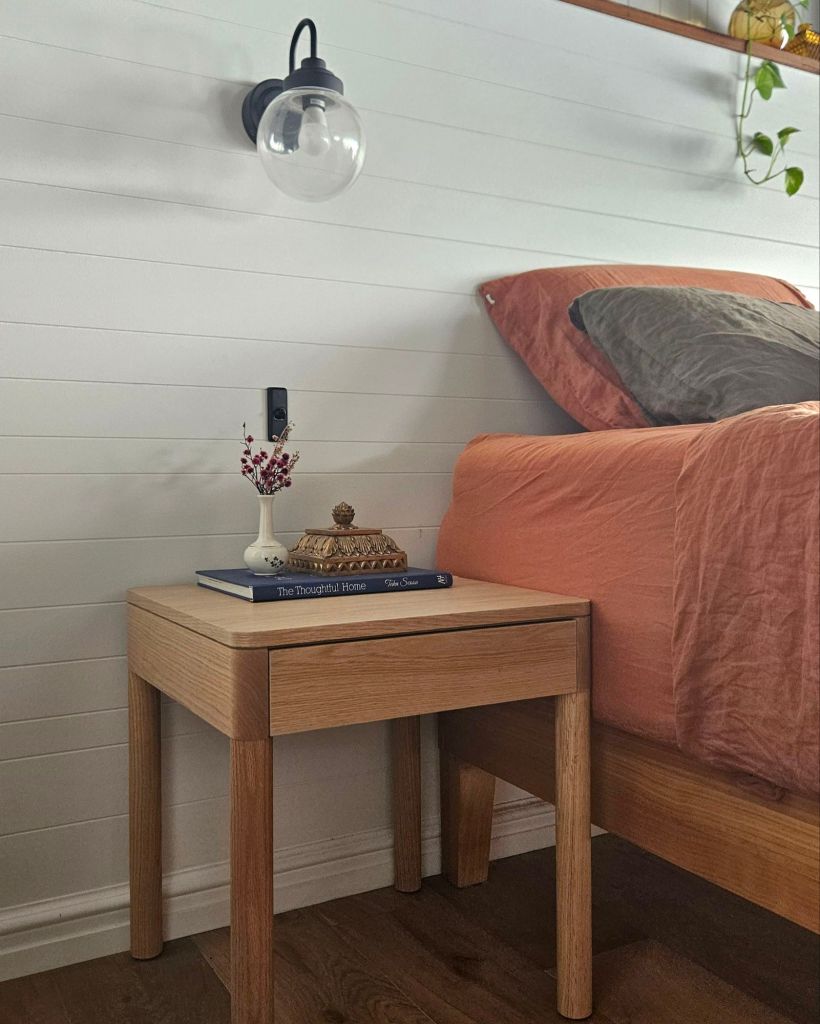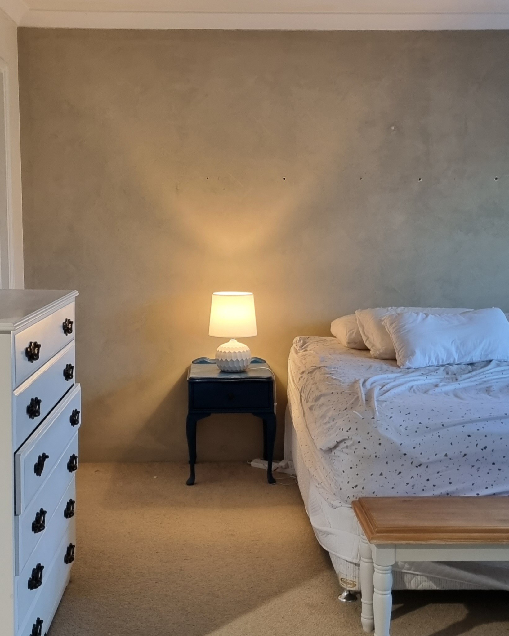 Previously we had some upcycled black bedsides, but the black showed up every speck of dust and I’m not a clean freak, so the sight of dust (that I refused to clean every day) was doing my head in!