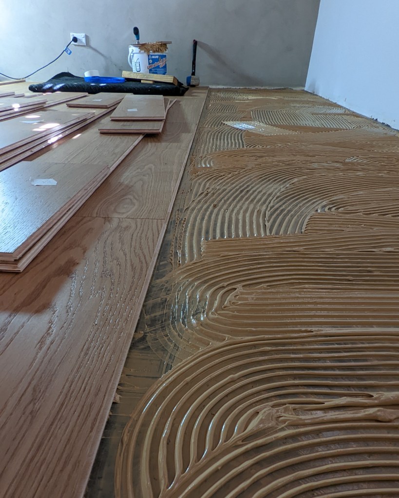 We bought oak flooring from Trevors Carpets here in Perth, which Martin installed himself.