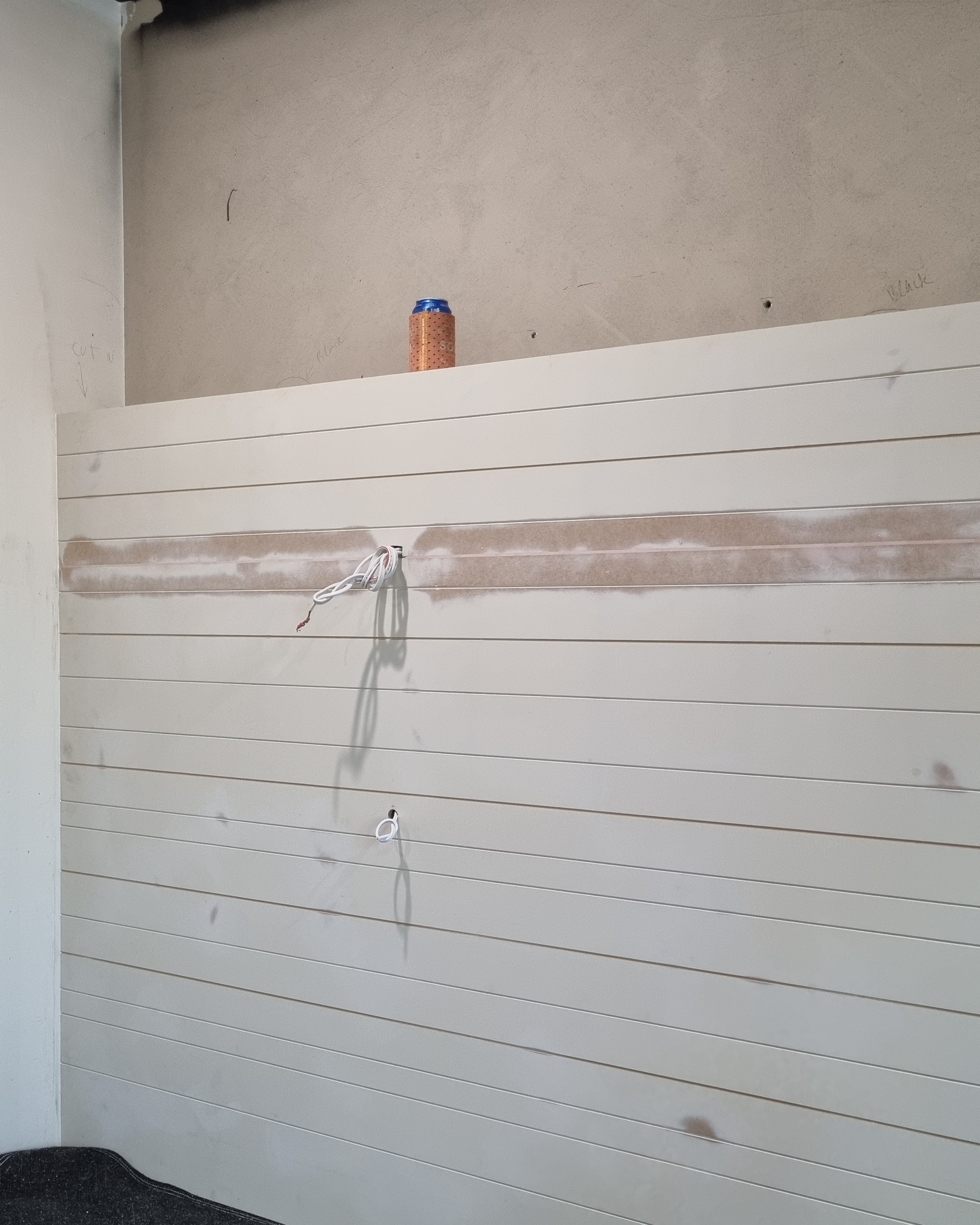 After building the frame, he installed panelling (which we sourced secondhand) horizontally on the bottom part of the bedhead.