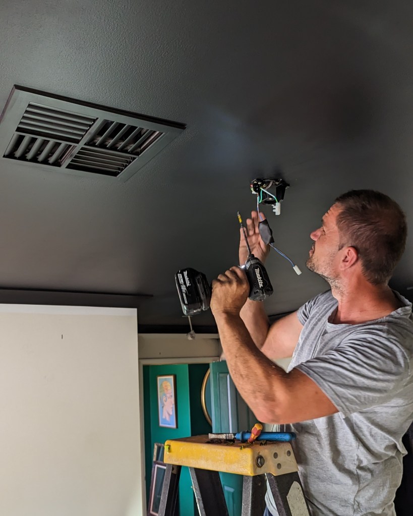 Along with the black fan, our electrician buddy Dave installed dimmable downlights on the ceiling. We don’t use the overhead lighting too much, but when we do we like it quite dim, so having that option is great.