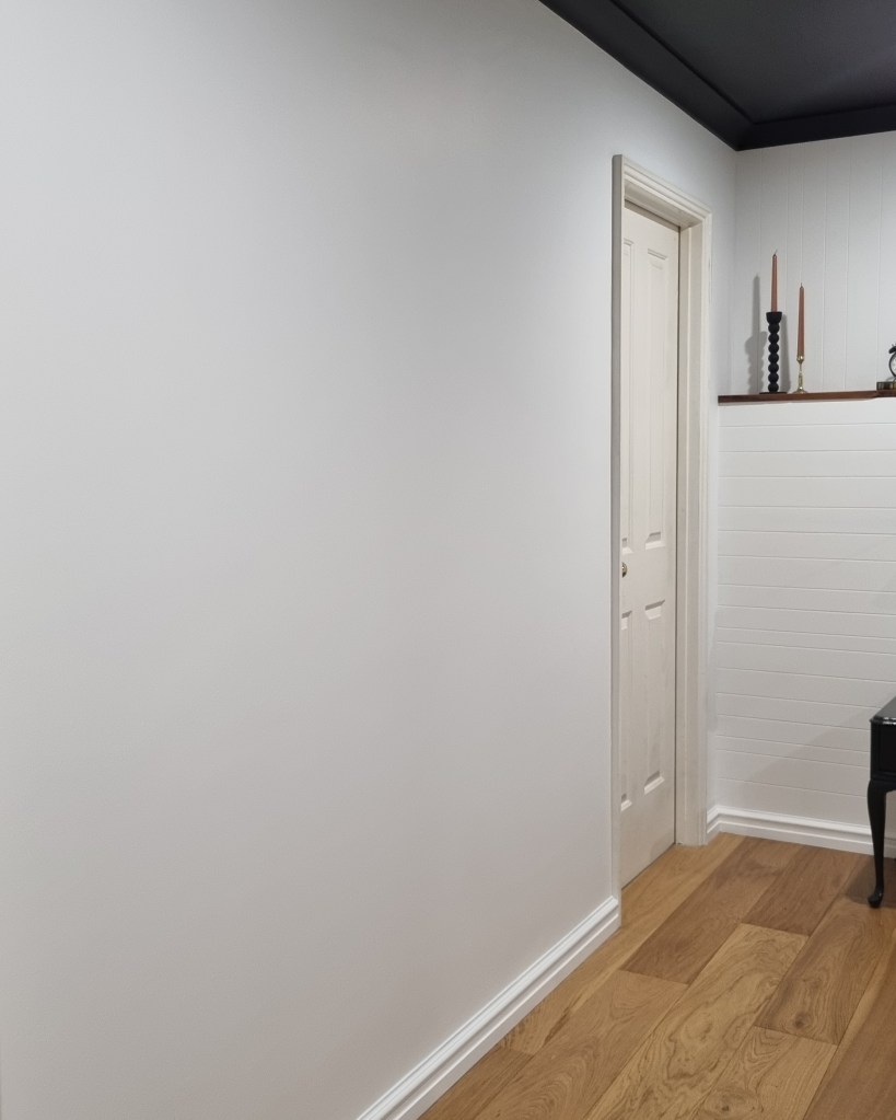 Once the beautiful new oak floors were in, the bones were finally good! Martin finished it off with white skirting to match the white walls as well as the trim in the rest of the house.
