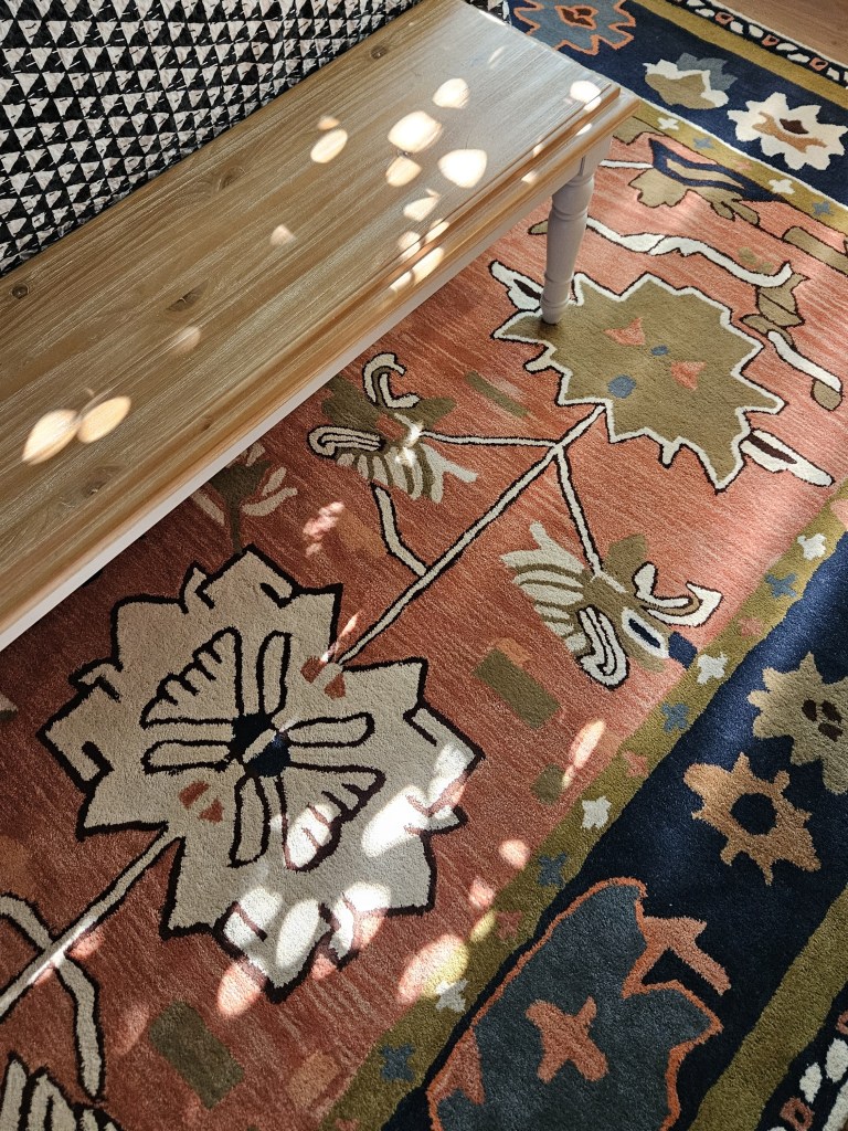 We recently upgraded our rug to a wool ‘Desert Bloom’ rug from Maia Homes and it has completely changed the vibe of the room!