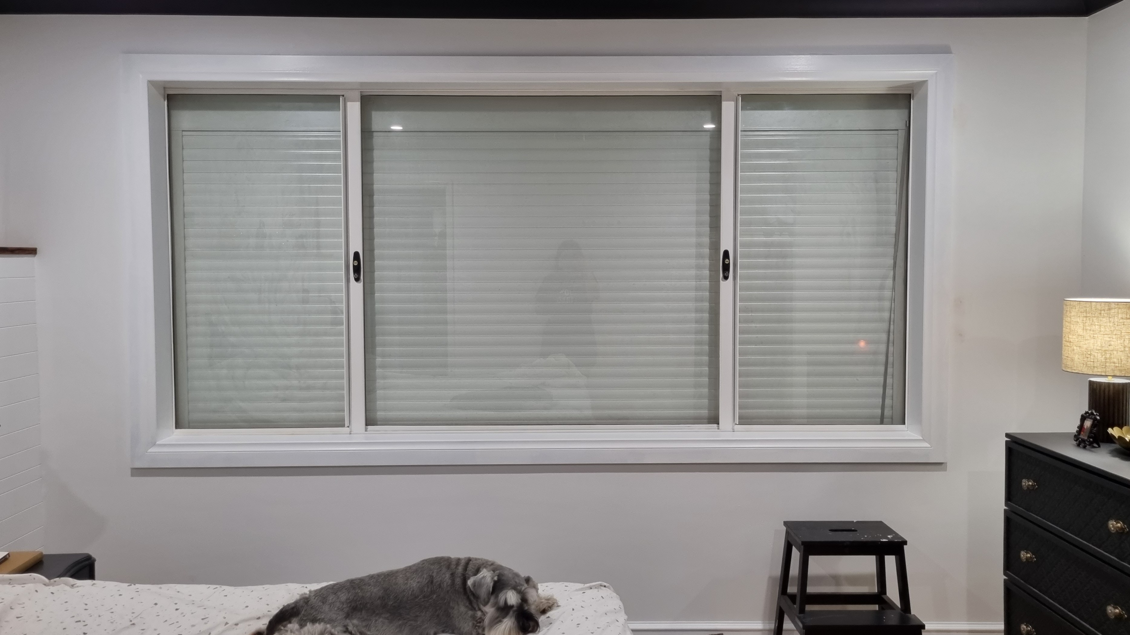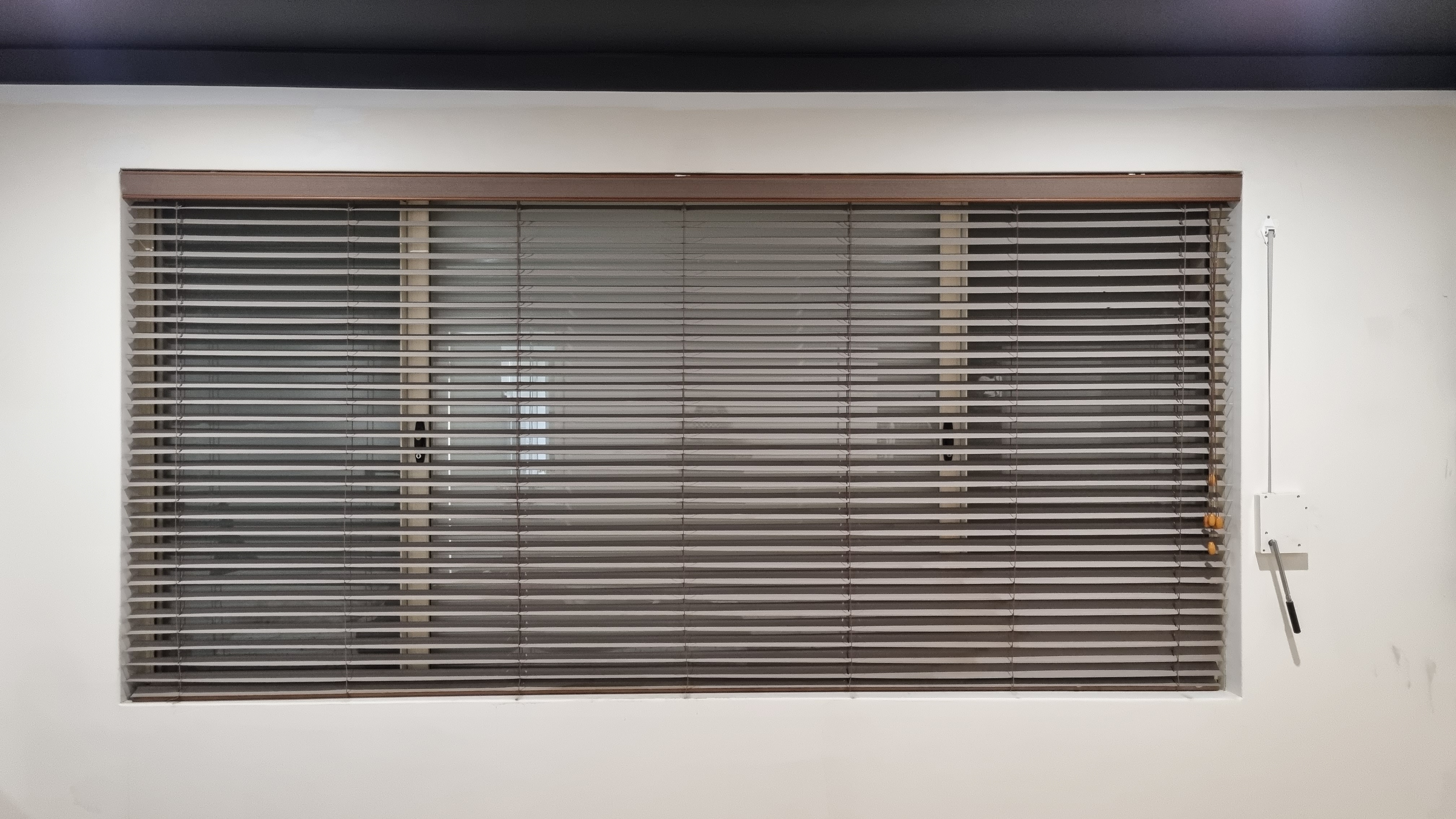 The window had roller shutters and the previous owner had some light brown venetian blinds.