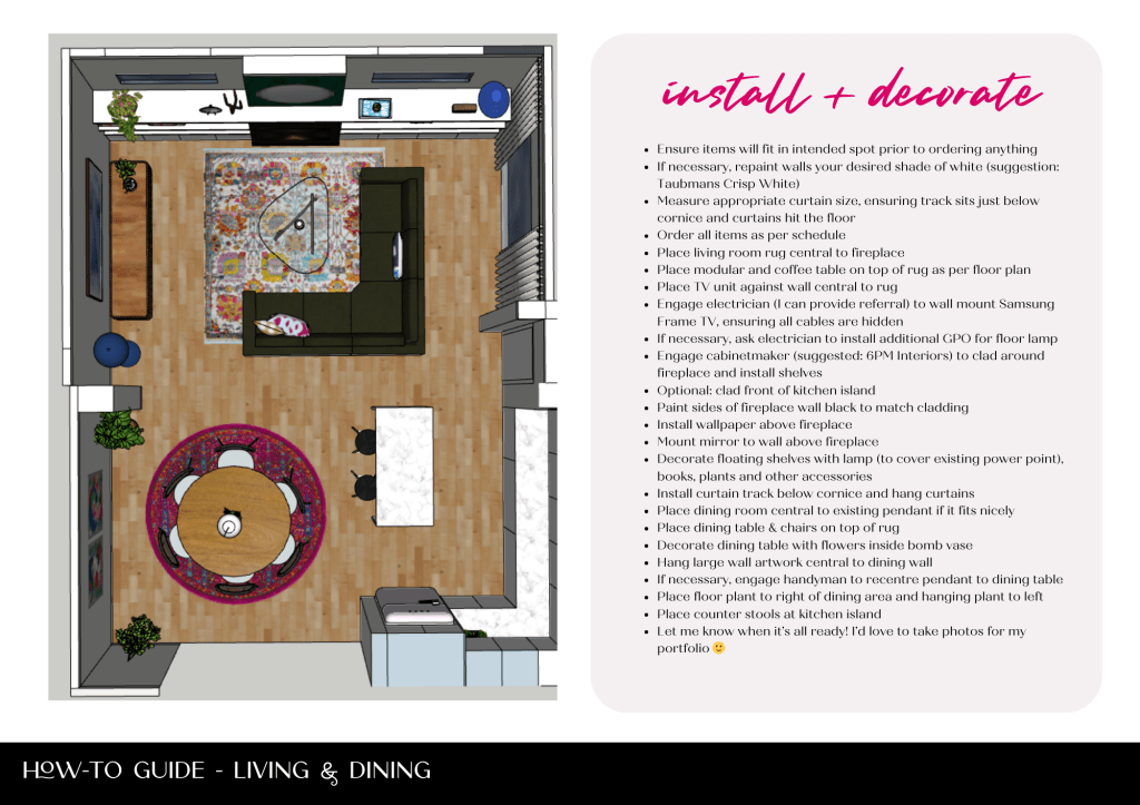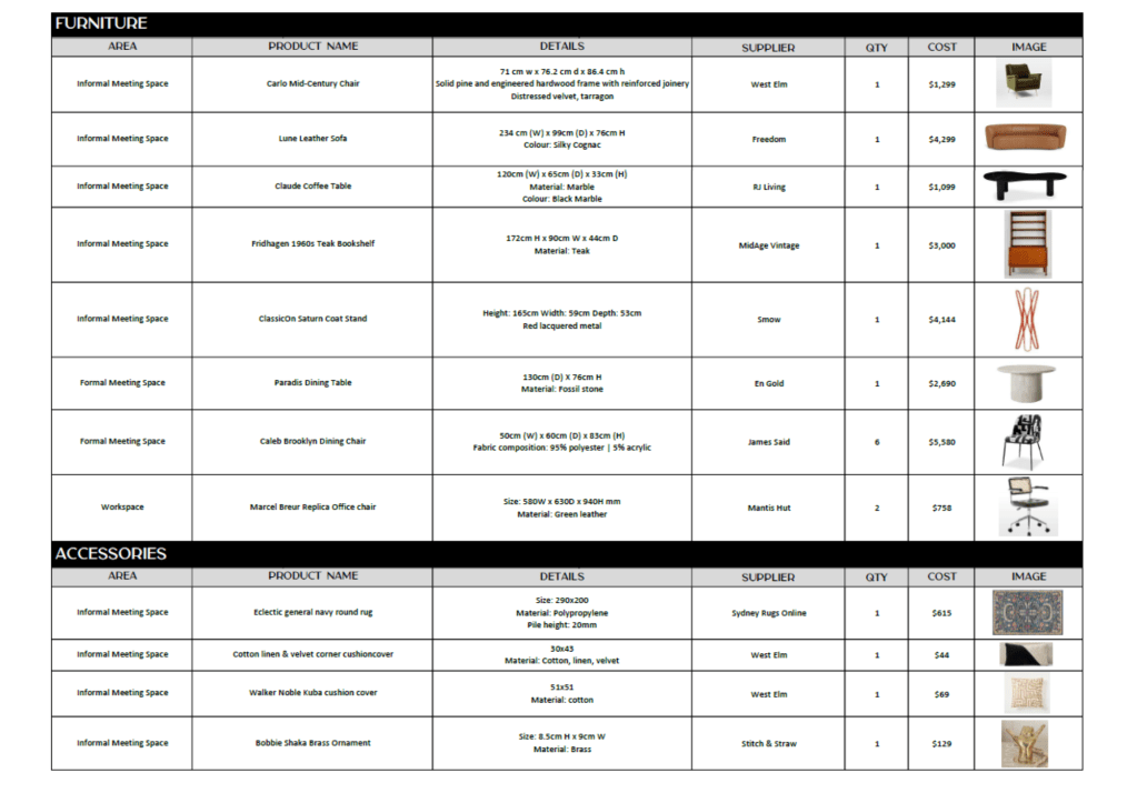 *All prices in Australian dollars. Design packages include one revision. Large gallery walls and custom cabinetry drawings incur an additional cost and are quoted based on scope. Three or more rooms can be quoted at a discounted rate.